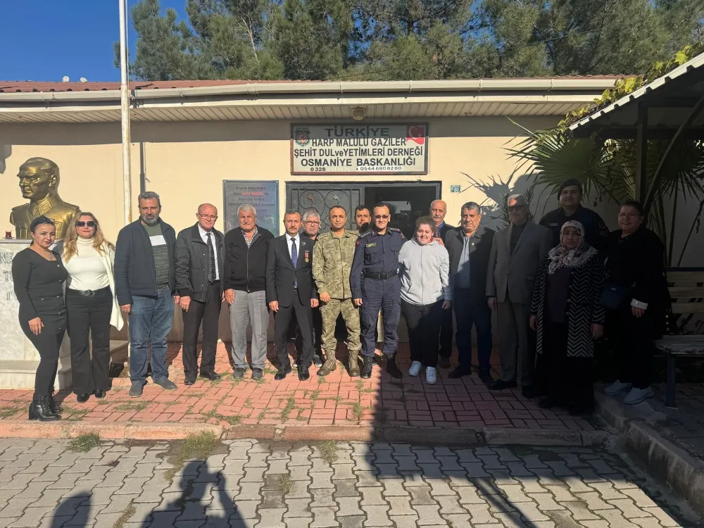 Garnizon Komutanı ve 12. Komando Tugay Komutan Vekili Piyade Albay Hüseyin Yılmaz ile Osmaniye İl Jandarma Komutanı Jandarma Kıdemli Albay Şener Kaytez, Türkiye Harp Malulü Gaziler Şehit Dul ve Yetimleri Derneği Osmaniye Şube Başkanlığı’nı ziyaret etti. Ziyarette Dernek Başkanı İsmail Kaba ve yönetim kurulu üyeleri tarafından karşılanan komutanlar, şehit aileleri ve gazilerle bir araya geldi. Dernek binasında gerçekleştirilen ziyarette derneğin çalışmaları hakkında bilgi paylaşımında bulunuldu, talep ve öneriler dinlendi. Samimi bir atmosferde gerçekleşen ziyaretin sonunda komutanlar, şehit aileleri ve gazilerin her zaman yanında olduklarını vurguladı. Dernek Başkanı İsmail Kaba, nazik ziyaretleri dolayısıyla Albay Yılmaz ve Albay Kaytez’e teşekkür ederek, desteklerinin kendileri için önemli olduğunu ifade etti.