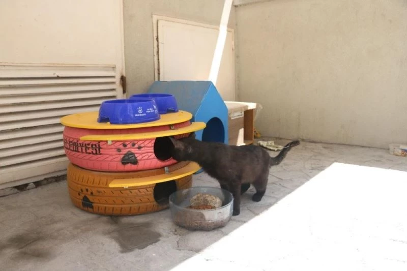 Konak Belediyesinin geçtiğimiz kış, üretim ve dağıtımına başladığı kedi evleri, hayvanseverlerden gelen yoğun talep üzerine yaz aylarında da can dostlara ulaştırılmaya devam ediyor. Konak Belediyesi Park ve Bahçeler Müdürlüğüne bağlı atölyelerde tasarlanarak üretime geçen kedi evleri, usta işçilerin maharetli ellerinden çıkıyor. Atık araba lastiklerinden dönüştürülerek yapılan iki katlı evler, rengarenk boyanarak estetik bir görünüm de kazanıyor. Sevimli kediler kış aylarında içlerine girerek soğuktan korundukları kedi evlerini, sıcak geçen yaz günlerinde de kaldırım ve asfaltın sıcağından kaçarak üstlerine çıkıp serinleyebildikleri bir alan olarak kullanıyor. Belediye görevlileri de kedi evlerini, gölgelik ve yaz sıcağından en az etkilenecek noktalara yerleştiriyor. Konak’ta hayvanseverlerin talep ettiği noktalara ve muhtarlık binalarının yakınlarına yerleştirilen kedi evleri sayesinde kediler, muhtarlar ve mahalle sakinlerinin gözetiminde kalarak güven dolu bir ortamda yaşama imkanı buluyor.
