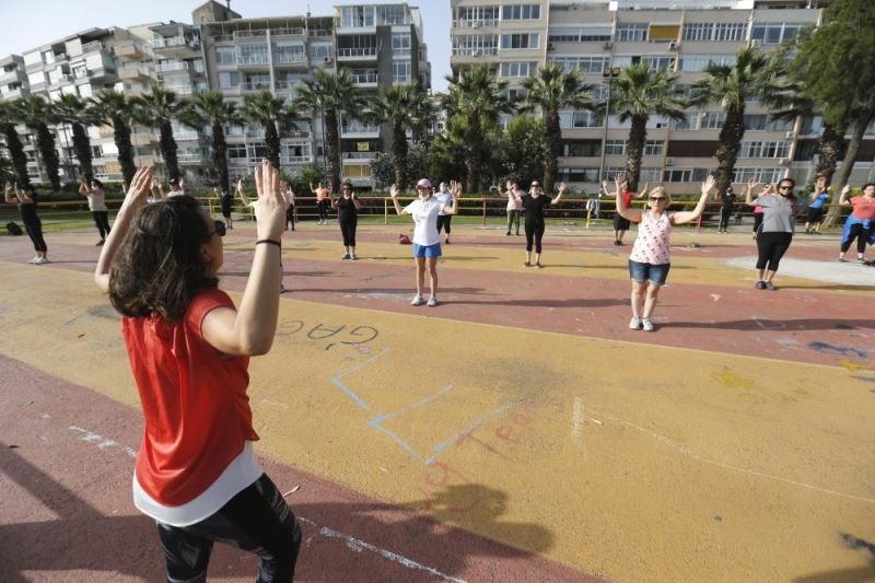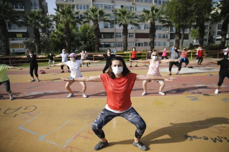 Konak Belediyesinin korona virüs nedeniyle ara verdiği aerobik, step ve pilates kursları açık havada yeniden başladı.