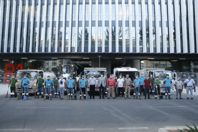 Konak Belediyesi, Güzelyalı ve Gültepe’den başlayarak çöp toplama, yıkama ve dezenfeksiyon çalışması başlattı. Pandemi ve sıcak hava kaynaklı virüs ve bakterilere savaş açan temizlik işleri müdürlüğü ekipleri, Konak’ın her sokağına girerek temizlenmemiş tek nokta bırakmayacak.