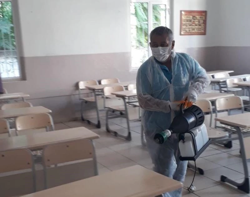 Pandemi döneminde yaptığı çalışmalar ve öncülük ettiği yardım kampanyalarıyla dikkat çeken Konak Belediyesi, salgına karşı mücadeleyi sürdürürken, yeni eğitim-öğretim yılı öncesi ilçedeki okullarda başlattığı dezenfekte çalışmalarına da devam ediyor.