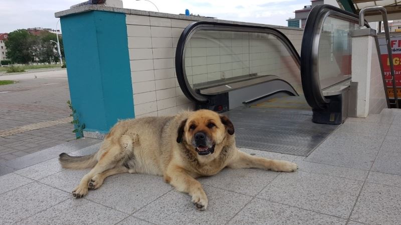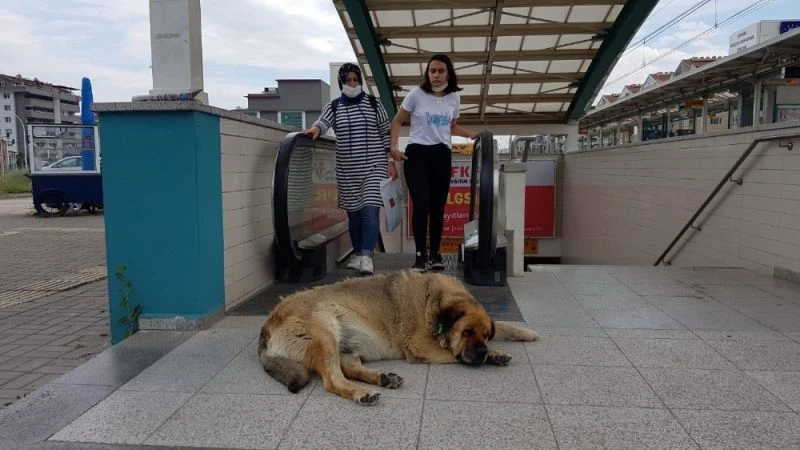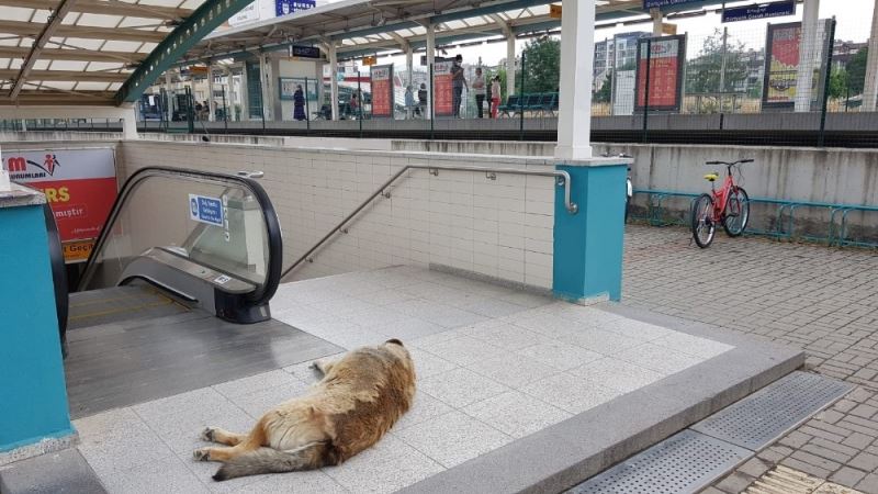 Bursa’da metro istasyonunun önüne yatan köpek, kendini sevdirmek için saatlerce bekliyor.