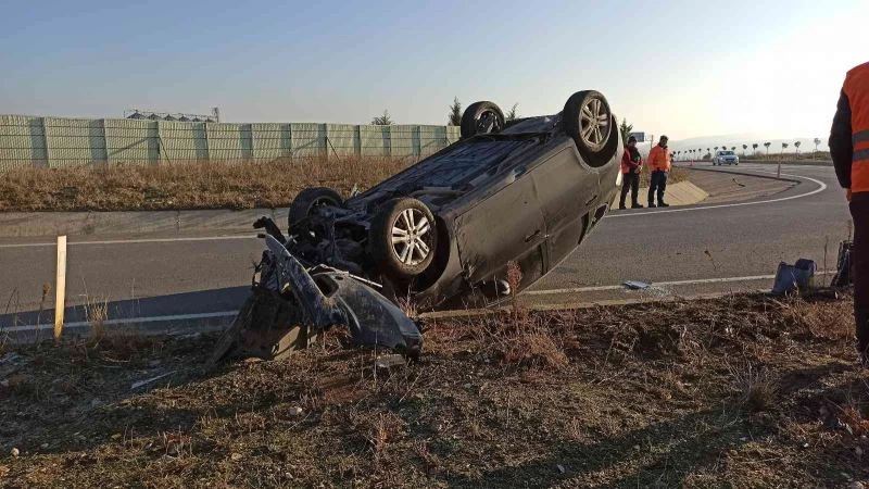 Edinilen bilgiye göre, Beğendik Kavşağı’nda sağa manevra yapan otomobil, sürücüsünün direksiyon hakimiyetini kaybetmesiyle savrulmaya başladı. Yolda takla atan araç, daha sonra refüje çaptı ve ters döndü.