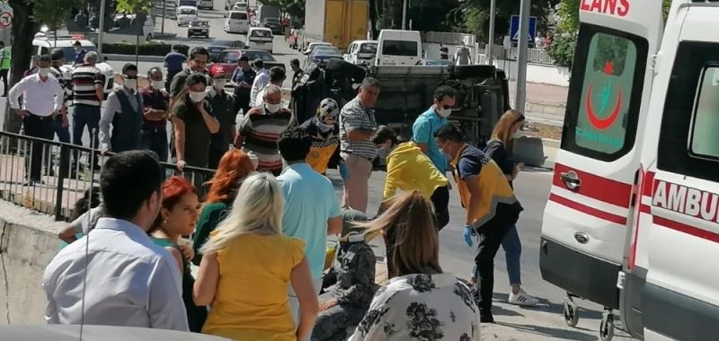 Kontrolden çıkan araç önce orta refüje çarptı, ardından devrildi, 2 yaralı
