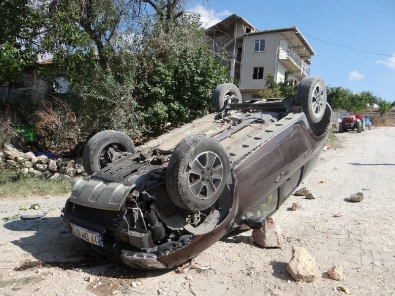 Alınan bilgilere göre; Bilecik’in Gölpazarı ilçesinde Büyük Belen Köyüne seyir halindeki 11 DM 673 plakalı hafifi ticari otomobil sürücü Cahit Özçakır köy girişinde aracının direksiyon hakimiyetini kaybetti. Kontrolden çıkan araç takla atarak, ters bir şekilde devrildi. Kazada sürücü araç içine sıkışırken, sürücüyü AFAD ekipleri kurtardı. Yaralı olay yerine gelen 112 Acil Servis ekiplerince yapılan ilk müdahalenin ardından Bilecik Devlet Hastanesine sevk edildi. Jandarma kazayla ilgili soruşturma başlatırken, şahsın tarlasından topladığı üzüm, elma ve armutları köye satmaya geldiği öğrenildi.