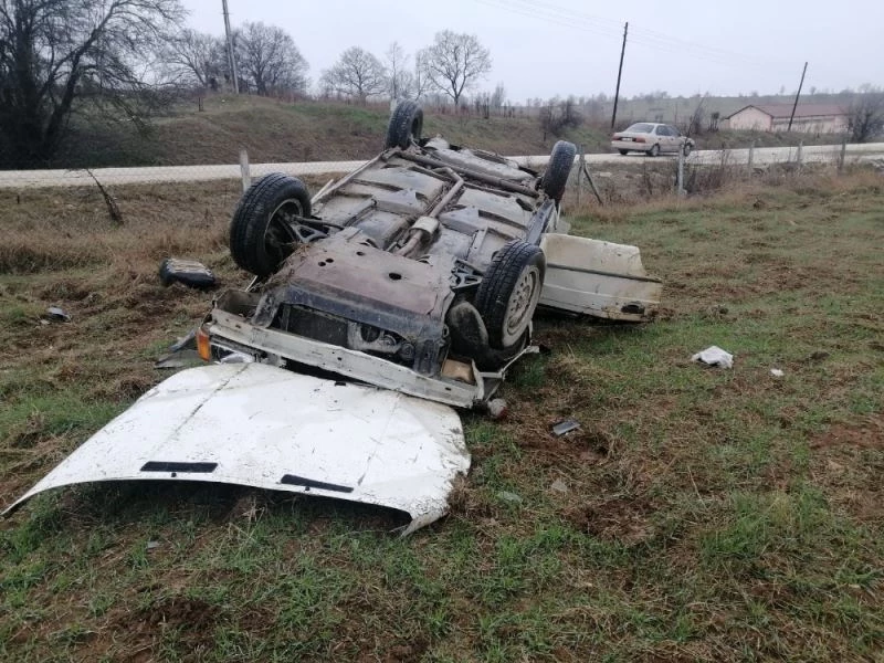 Kontrolden çıkan araç takla atıp tarım arazisine devrildi