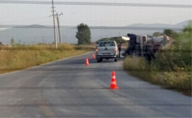 Muğla’nın Milas ilçesinde, seyir halindeyken kontrolden çıkan beton mikseri kaza yaptı.