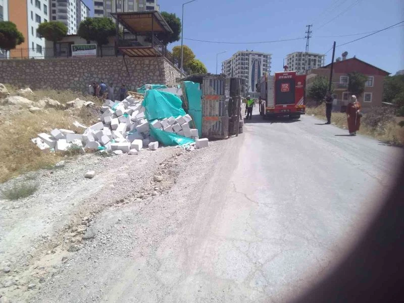Kaza, 12.30 sularında Battalgazi ilçesine bağlı Çöşnük Mahallesi’nde meydana geldi. Edinilen bilgilere göre, Venk sokak içerisinde seyir halinde olan G.Y. yönetimindeki gaz beton yüklü 35 AU 1712 plakalı kamyon sürücünün kontrolünden çıkarak devrildi. Yan yatan araçta bulunan betonlar yola savrulurken, sürücü şans eseri yara almadan kurtuldu.