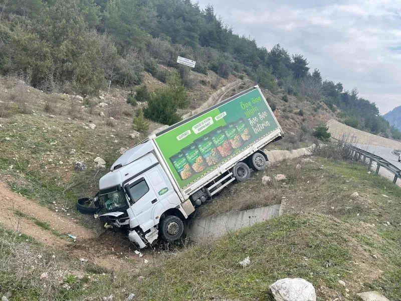 Bilecik’te seyir halinde iken kontrolden çıkan kamyon şarampolde devrilirken, sürücüsü hafif yaralandı.