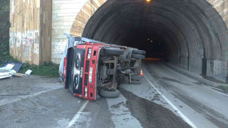Kayseri’den Kastamonu’nun İnebolu ilçesine malzeme getiren kamyon, tünel çıkışında kontrolden çıkarak devrildi. Kaza maddi hasarla atlatıldı.