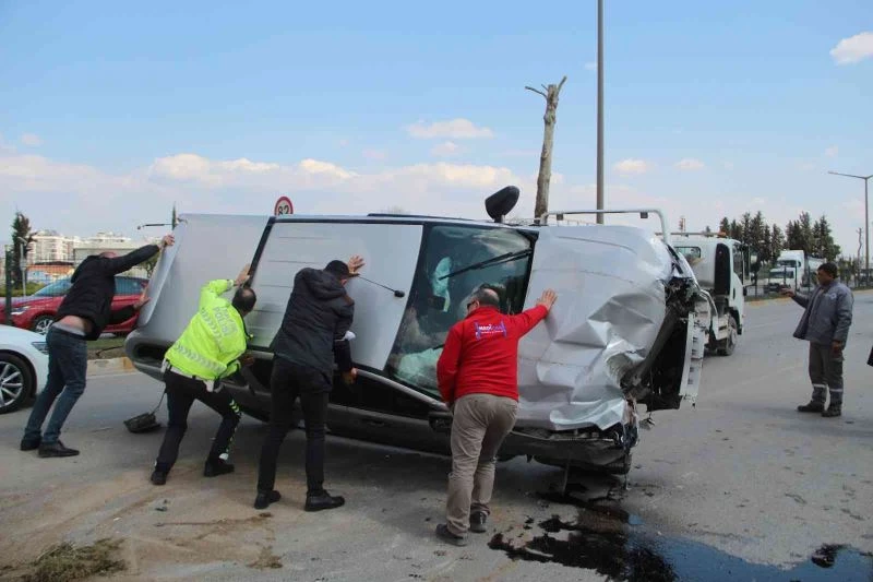 Kontrolden çıkan kamyonet önce bariyerlere çarptı, sonra yan yattı