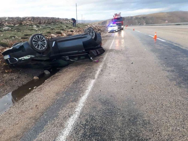 Edinilen bilgilere göre, Gürün ilçesi yakınlarında saat 18.30 sıralarında Orhan A. (49) yönetimindeki 34 EJU 504 plakalı BMW marka otomobil, asfaltın ıslak nedeniyle sürücüsünün kontrolünden çıkarak yol kenarındaki kayalara çarpıp takla attı. Kazada sürücü ile Hasan Albayrak (72) ve Gazal Albayrak (74) yaralandı. Yaralılar, ihbarla kaza yerine gelen sağlık görevlilerince olay yerinde yapılan ilk müdahalenin ardından ambulanslarla Gürün Devlet Hastanesi’ne kaldırılarak tedavi altına alındı.