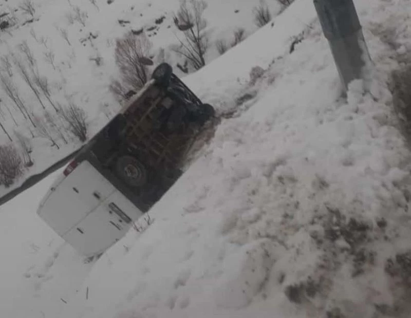 Hakkari’de yolun kaygan olmasından dolayı kontrolden çıkan bir minibüs şarampole yuvarlandı.