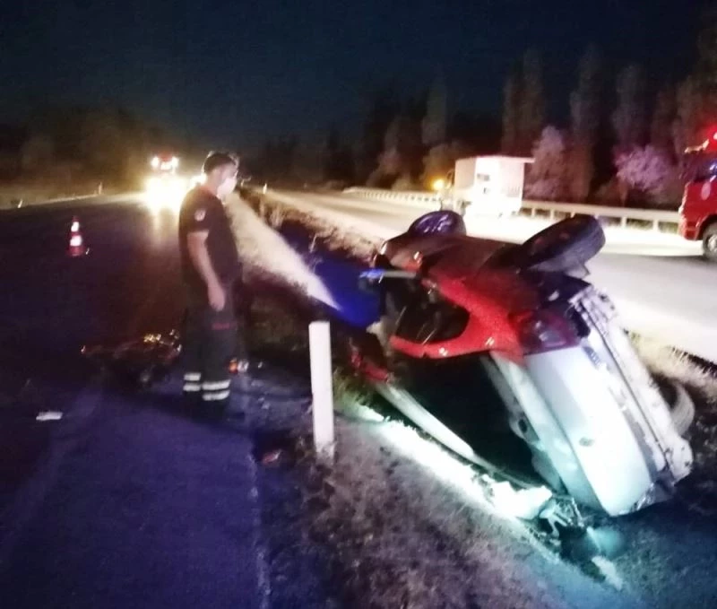 Çorum’un Sungurlu ilçesinde kontrolden çıkan otomobilin orta refüje devrilmesi sonucu meydana gelen trafik kazasında 3 kişi yaralandı.
