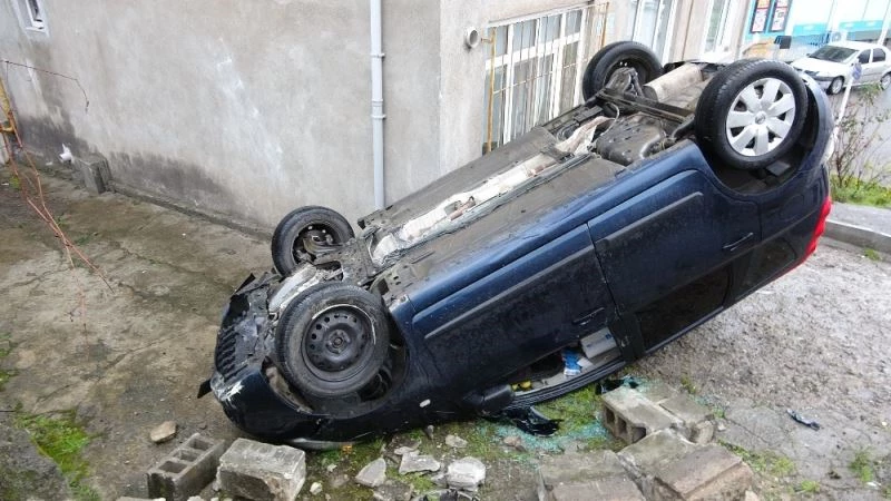 Zonguldak’ın Ereğli ilçesinde kontrolden çıkan bir otomobil evin bahçesine uçtu, kazada 2 kişi hafif şekilde yaralandı.