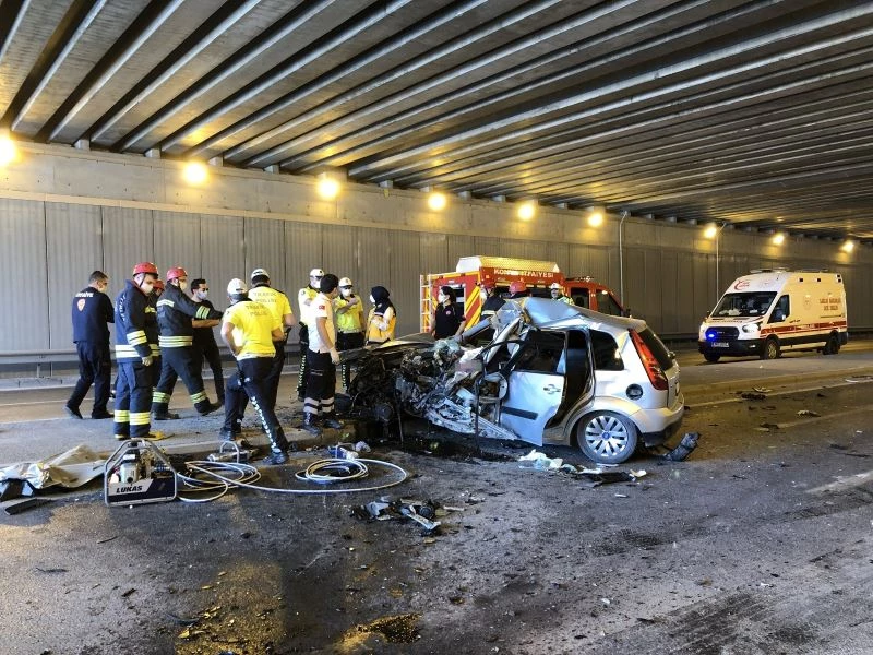 Kontrolden çıkan otomobil karşı şeritteki tıra çarptı: 1 ölü, 3 yaralı