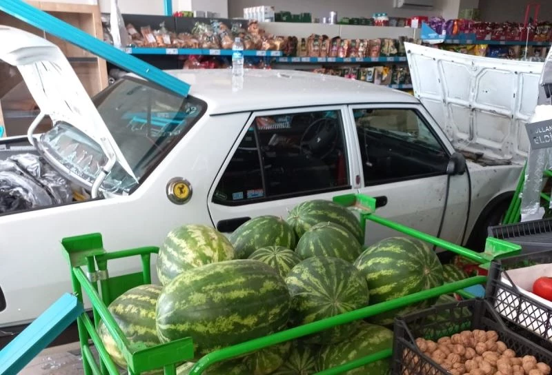 Aydın’ın Efeler ilçesinde sürücüsünün direksiyon hakimiyetini kaybettiği otomobil bir markete girerek durabildi. Kazada 2 kişi yaralanırken, marketin bayram dolayısıyla kapalı olması facianın önüne geçti.