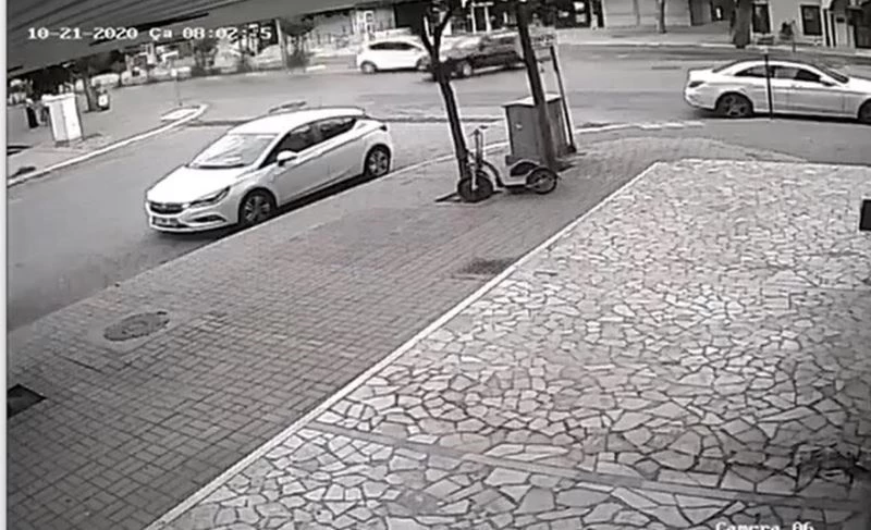 Diğer yandan kaza anı ise bir iş yerinin güvenlik kamerasına saniye saniye yansıdı.