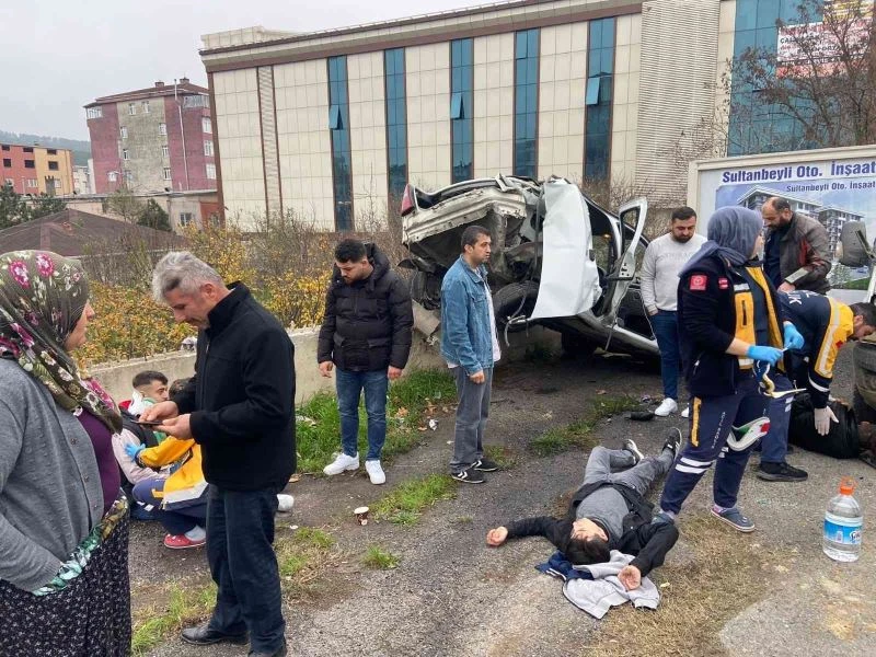 Kontrolden çıkan otomobil park halindeki kamyonete çarparak takla attı: 3 yaralı