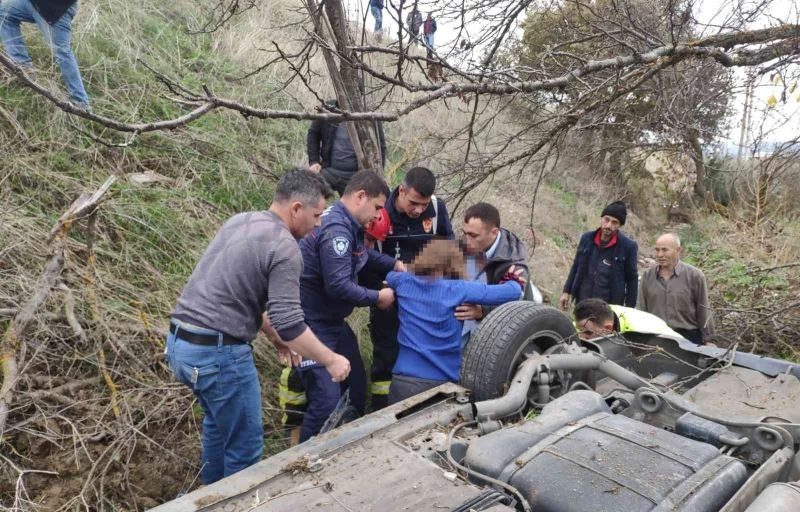 Manisa’da sürücüsünün direksiyon hakimiyetini kaybettiği otomobil taklalar atarak şarampole yuvarlandı. Kazada sıkıştıkları yerden itfaiye tarafından kurtarılan 2 kadın hastanede tedavi altına alındı.