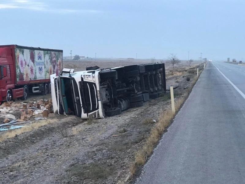 Konya’nın Karapınar ilçesinde kontrolden çıkan tırın devrilmesi sonucu meydana gelen trafik kazasında 1 kişi yaralandı.