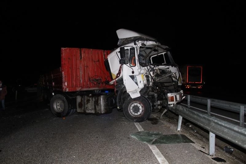 Manisa’nın Kula ilçesinde yağışlı havanın da etkisiyle kayganlaşan yolda kontrolden çıkan tır bariyerle çarparak durabildi. Karayolunu trafiğe kapatan tıra çarpan otomobil de hurdaya dönerken, kazada yaralanan olmadı. Kaza sebebiyle İzmir-Ankara D300 karayolu bir süre trafiğe kapandı.