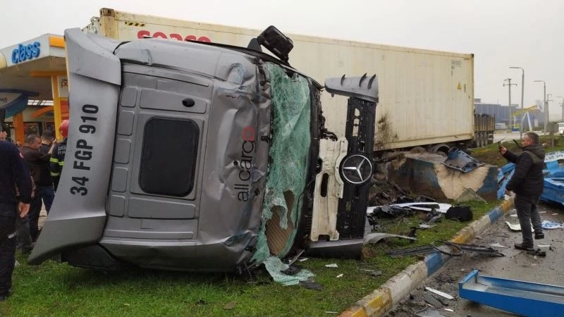 Sakarya’nın Akyazı ilçesinde kontrolden çıkan tırın park halindeki kamyona çarpması neticesinde meydana gelen kazada, tır kabininde sıkışan sürücü yaralandı.