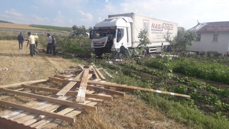 Çorum’da gümrük mallarının yüklü olduğu tır, kontrolden çıkarak tarlaya uçtu. Tırın çarptığı tarla içerisindeki ev yıkıldı.