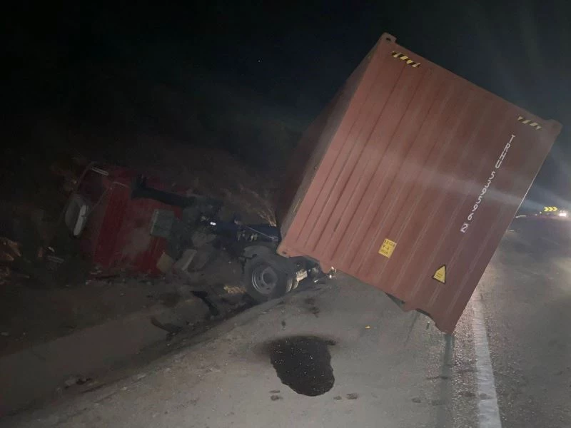 Kontrolden çıkarak refüje giren tırın sürücüsü yaralandı