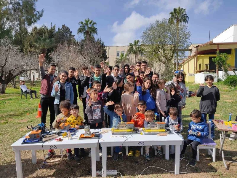 Mersin Büyükşehir Belediyesi Tarsus Kadın ve Çocuk Bilim, Teknoloji Atölyesi’nde eğitim alan öğrenciler, ‘Mesafeler Bilime Engel Değil’ projesi çerçevesinde Tarsus Berdan Konukevinde kalan depremzede ailelerin çocukları ile bir araya geldi.
