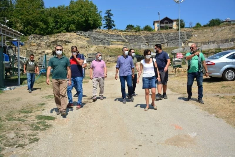 DÜZCE(İHA) – Batı Karadeniz bölgesinin tek antik kenti olan Konuralp’te kazı çalışmaları devam ediyor. Kazı çalışmasını Düzce Üniversitesi Fen Edebiyat Fakültesi Yönetim Kurulu üyeleri ziyaret ederek yürütülen çalışmalar hakkında bilgiler aldı.