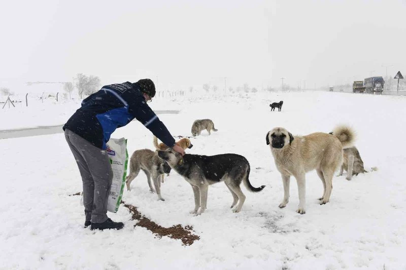 Konya Büyükşehir soğuk kış günlerinde sahipsiz hayvanların yanında