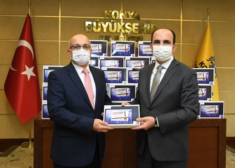Konuşmanın ardından yaklaşık 10 bin adet tablet ve hafıza kartı Konya Büyükşehir Belediye Başkanı Uğur İbrahim Altay tarafından İl Milli Eğitim Müdürü Seyit Ali Büyük’e teslim edildi.