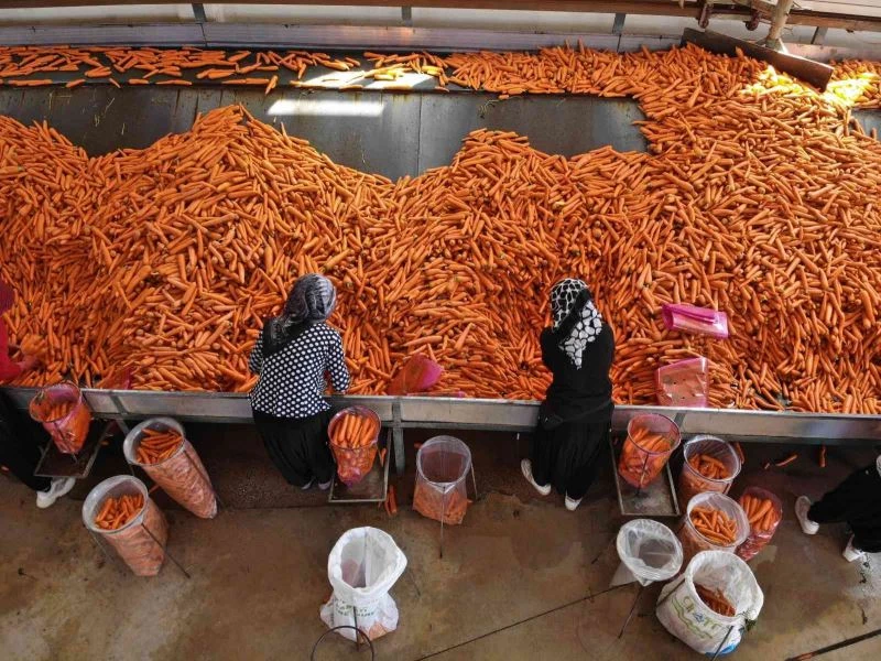 Türkiye’nin havuç ihtiyacının yaklaşık yüzde 65’ini karşılayan Konya’da üretim ağı bu yıl tahmin edilen raporlara göre yaklaşık 385 bin ton olması bekleniyor. Tarlalardan makinelerle sökülen havuç, ince bir el emeğinin ardından torbalanarak satış için yola çıkıyor.