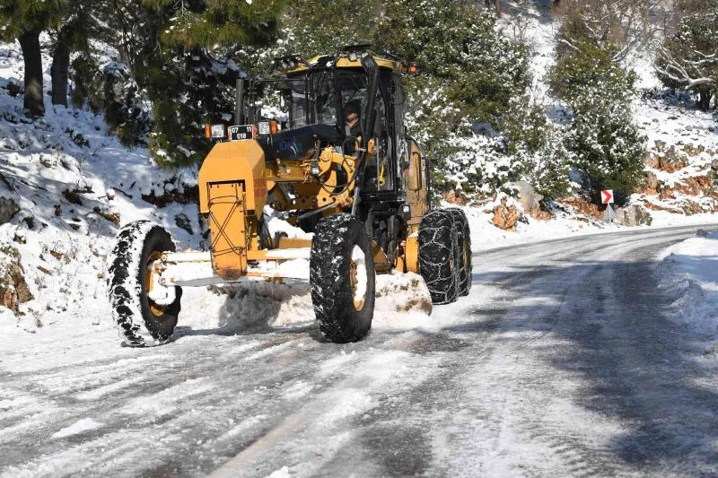 Konyaaltı Belediyesi bir yandan kent merkezine yağan sağanak yağmura karşı çalışmalarını sürdürürken, diğer yandan kırsal bölgedeki karlı yolları açmak için çalışıyor.