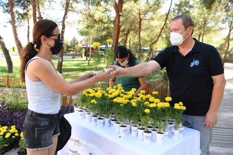 Konyaaltı Belediyesi, Antalyalıların vazgeçilmezi haline gelen HayatPark’ta ziyaretçilere 10 bin adet mevsimlik çiçek hediye etti.