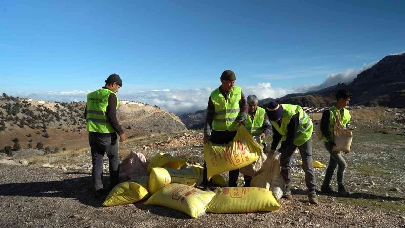 Konyaaltı Belediyesi, meralarda ekimini yaptığı ot tohumlarının verimini artırmak için gübreleme işlemi gerçekleştiriyor.