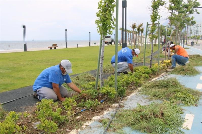 Park ve Bahçeler Dairesi ekipleri, ziyaretçi girisinin olmadigi sürede Konyaalti Sahili’nde yürüyüs yollari, yesil alanlar, kent mobilyalari ve soyunma kabinlerine kadar kapsamli bir bakim-onarim gerçeklestirdi.