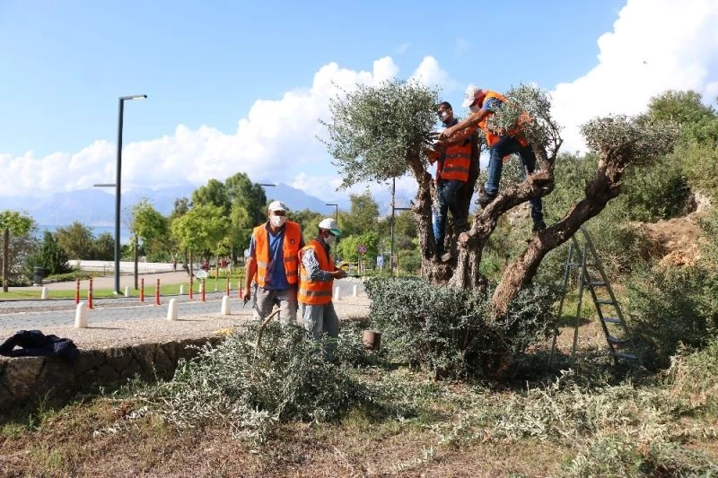 Büyükşehir Belediyesi Park ve Bahçeler Dairesi Başkanlığı ekipleri Konyaaltı Sahili ve Akdeniz Bulvarı’nda çalı grubu bitkiler ile ağaçları kışa hazırlıyor. Konyaaltı Varyant’tan Boğaçayı‘na kadar sahil boyunca geniş çaplı bir çalışma yürüten ekipler, fırtına mevsimi öncesi kuruyan, kırılma tehlikesi bulunan ağaçların dallarını budayarak, bakımlarını yapıyor.