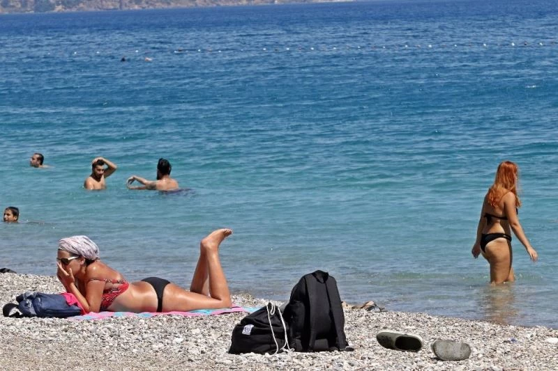 Turizmin başkenti Antalya’da hava sıcaklığı öğlen saatlerinde 39 dereceye kadar ulaştı. Nem oranın 18 derece ölçüldüğü kentte, sıcaktan bunalanlar Konyaaltı Sahili’ne geldi. Sıcaklıktan dolayı sahildeki yoğunluğun geçtiğimiz haftalara göre daha az olduğu dikkat çekti. Plajdaki tatilciler ise serinlemek için bol bol yüzdü, bazıları da güneşlendi. Sahilde çoğu tatilcilerin kıyıda ve denizde sosyal mesafe kuralarına uyduğu ancak çoğu tatilcinin bazı vatandaşlar dışında maske takmadığı gözlemlendi.