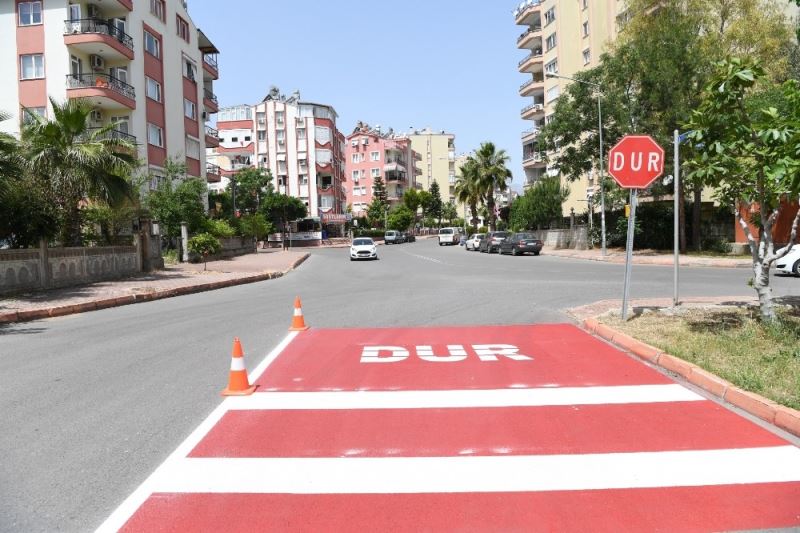 Konyaaltı Belediyesi, ara sokaklarda yaya güvenliğini arttırmak için işaretleme çalışması gerçekleştiriyor.