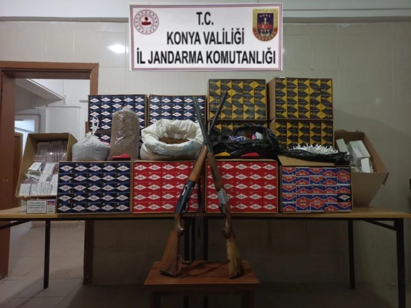 Edinilen bilgiye göre, aldıkları istihbaratları değerlendiren Konya İl Jandarma Komutanlığı ekipleri, Ilgın ilçesine bağlı Ağalar ve Fatih Mahallesi’nde ikamet eden iki şahsın evinde adli makamlardan alınan arama kararına istinaden arama yaptı. Ekiplerin yaptıkları aramalarda 170 bin 200 adet bandrolsüz boş makaron, 3 bin 55 adet bandrolsüz dolu makaron, 8,5 kilo tütün, 3 adet tütün sarma makinesi ile 2 adet av tüfeği ele geçirildi. Operasyon çerçevesinde iki şüpheli gözaltına alınırken ele geçirilen eşyalara ve malzemelere el konuldu.
