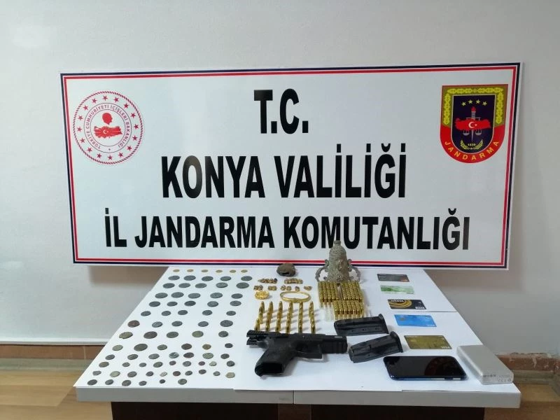 Edinilen bilgiye göre, Karapınar İlçe Jandarma Komutanlığı ve İstihbarat Şube Müdürlüğü ekipleri, Ereğli ve Karapınar ilçesine tarihi eser sevkiyatı yapılacağı bilgisi üzerine çalışma başlattı. Araştırmaların tamamlanmasının ardından harekete geçen ekipler, 03 VE 897 plakalı aracı Karapınar ilçesinde durdurdu. Yapılan aramada, 73 adet gümüş sikke, 6 adet altın sikke, 1 adet altın bilezik, 2 adet tarihi vazo, 9 adet altın bileklik parçası olmak üzere toplam da 91 tarihi eser ele geçirildi. Ayrıca, 1 adet tabanca, 2 şarjör ve 163 tabanca mermisine de el konuldu. Araçta bulunan M. T. (46), M.K. (42), A.E. (42), S.Y. (38) ve V.U.(43) gözaltına alındı. Şüpheliler ifadeleri alınmak üzere Karapınar İlçe Jandarma Komutanlığına götürüldü.