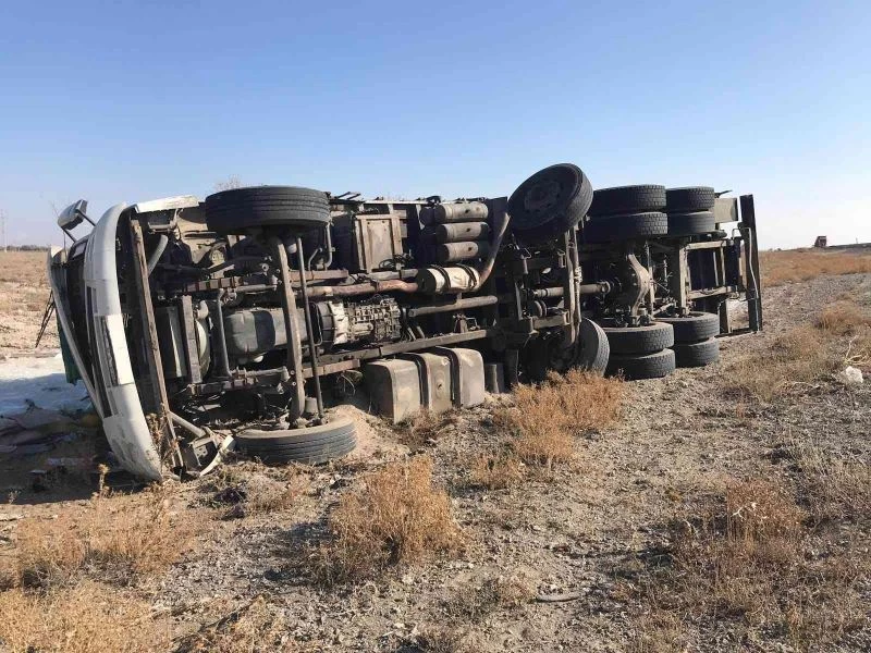 Konya’nın Karapınar ilçesinde cam yüklü kamyonun şarampole devrilmesi sonucu meydana gelen trafik kazasında, kamyon şoförü yaralandı.