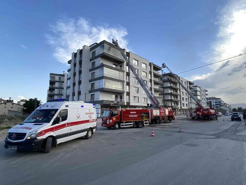 Konya’da bir binanın çatısında çıkan yangın paniğe neden oldu.