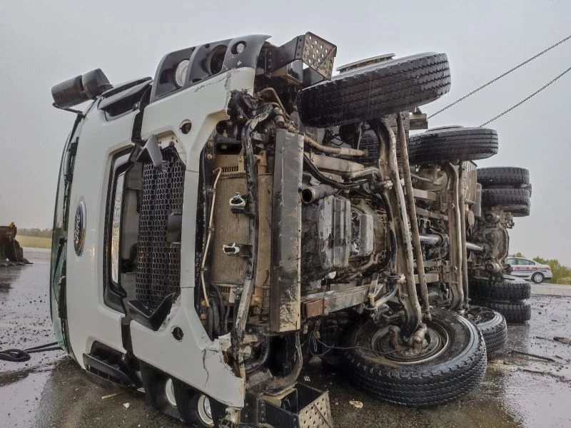 Konya’nın Ereğli ilçesinde kontrolden çıkıp devrilen kamyonun sürücüsü yaralandı.