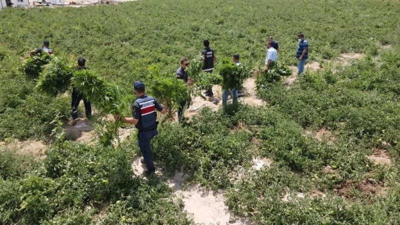 Konya’da domates tarlasında Hint keneviri ele geçirildi