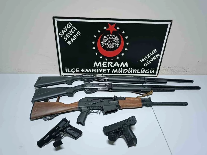 Konya’da düğün ve asker eğlencelerinde silahla havaya ateş açan şahıslara yönelik gelen ihbarları değerlendiren polis ekipleri, 3 farklı adreste 2 adet ruhsatsız tabanca, 4 adet kurusıkı tabanca ve tabancalara ait şarjör ile 4 adet av tüfeği ele geçirdi. Olayla ilgili 5 şahsı hakkında yasal işlem başlatıldı.