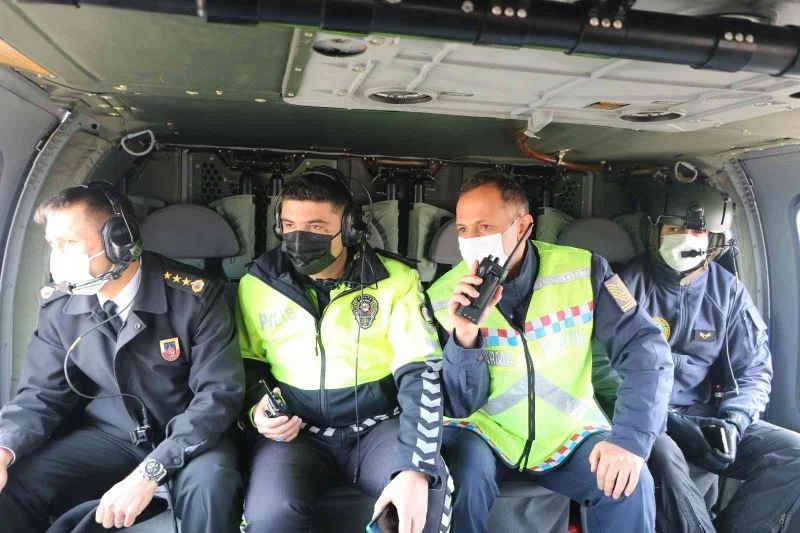 Konya’da İl Jandarma Komutanlığı ve İl Emniyet Müdürlüğü ekiplerince helikopter destekli trafik denetimi yapıldı.