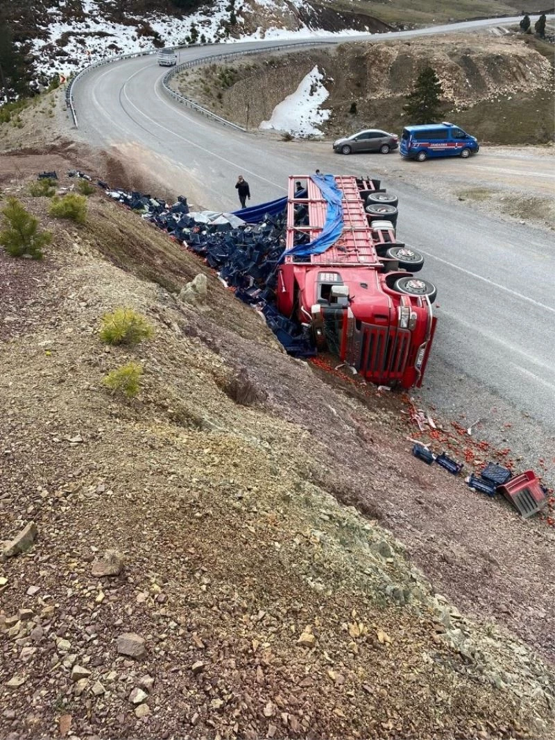 Olay, Seydişehir Bozkır karayolunun 10. kilometrede meydana geldi. Edinilen bilgiye göre, O.B. (35) idaresindeki 51 ABD 77 plakalı kamyon, sürücüsünün direksiyon hakimiyetini kaybetmesi sonucu virajı alamayarak devrildi. İhbar üzerine olay yerine polis ve sağlık ekipleri sevk edildi. Kamyondan yaralı olarak çıkartılan sürücü O.B. ve araçta bulunan K.K. (17) Seydişehir Devlet Hastanesi’ne kaldırılarak tedavi altına alındı.